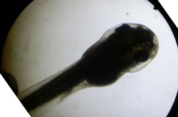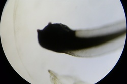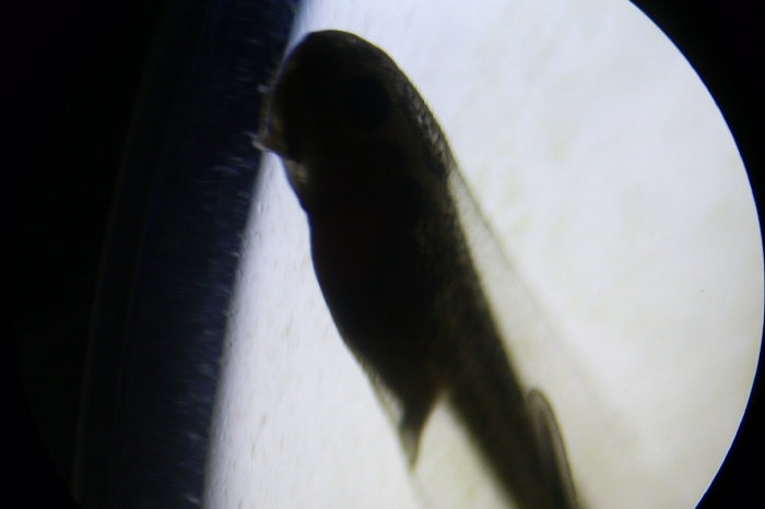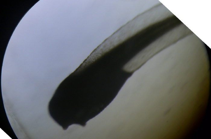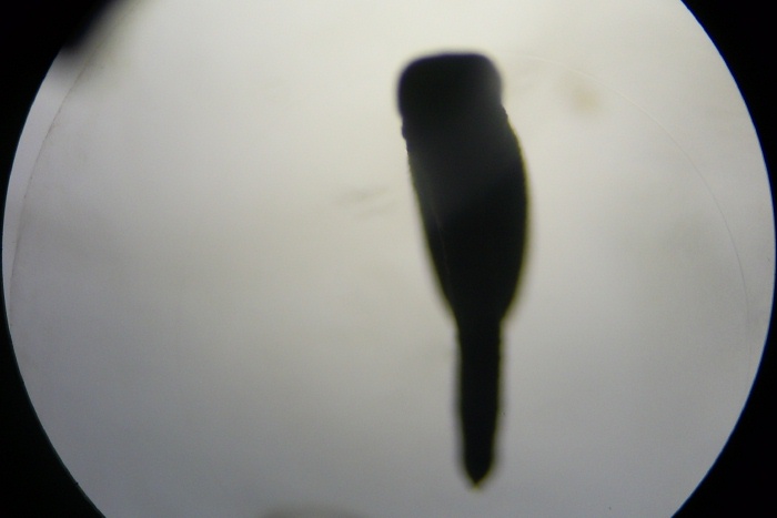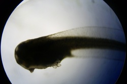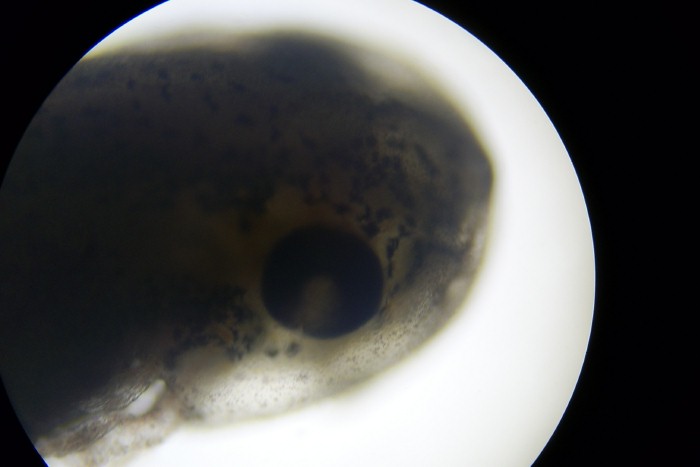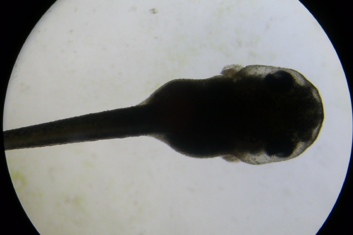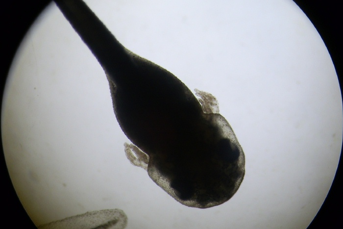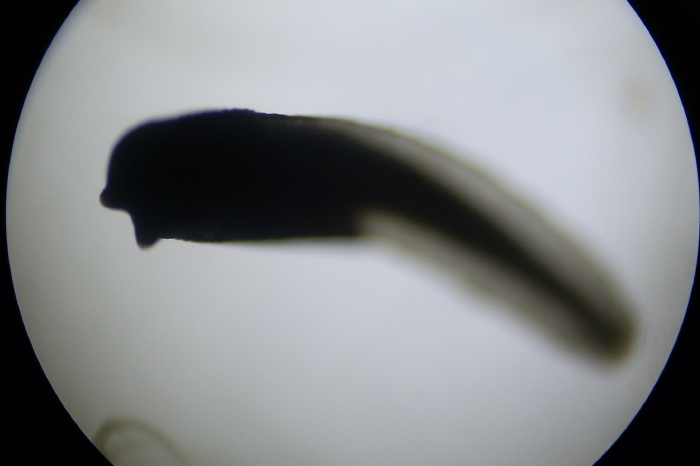 One of the tadpoles on the next largest zoom of the microscope.